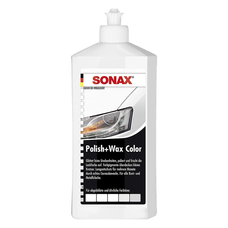 پولیش و واکس رنگی سفید سوناکس یک پوليش رنگی با واکس کارنابای طبيعی برای انواع رنگ های سفید استاندارد و متاليک است. رنگدانه های موجود در پولیش و واکس رنگی سفید سوناکس خط و خش های ريز را می پوشاند و باعث محافظت بلند مدت رنگ شده و به آن درخشش و براقيت فوق العاده ای می دهد. تميز کردن، پوليش و حفاظت رنگ با واکس در يک حرکت.