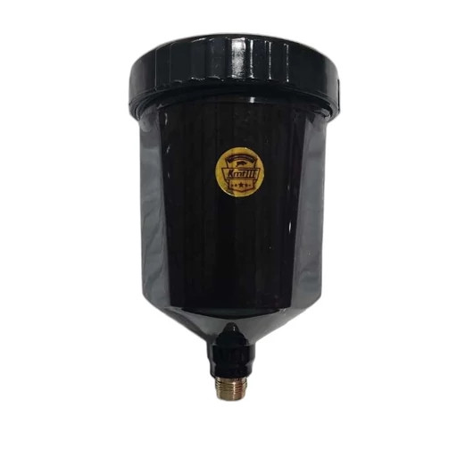 مخزن پیستوله kmt با حجم 600 میلی لیتر می باشد. رنگ این محصول مشکی براق می باشد که به زیبایی آن افزوده است . بسته بندی یک عددی است از جنس پلاستیک مقاوم بوده , درب آن به خوبی چفت می شود و امکان ریختن رنگ از آن را به حداقل می رساند و مناسب برای نقاشان ، رنگاری و غیره می باشد. رزوه این پیستوله از بیرون است و جنس آن برنجی می باشد و مناسب برای پیستوله های آسترا و طرح آسترای ایتالیا است.