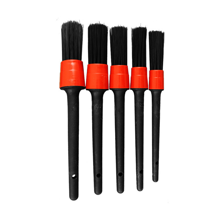 کیت پنج عددی قلم دیتیلینگ قرمز SRS Detailing Brush دارای ۵ عدد قلم دیتیلینگ با سایزهای مختلف است که برای جلوگیری از آسیب و خط و خش روی سطوح با بدنه پلاستیکی و موهایی طبیعی طراحی شده است. این قلم موها با آب یا بدون آب قابل استفاده می باشد. طول عمر بالایی داشته و دارای حفره ای در انتهای دسته به منظور آویزان کردن روی دیوار برای صرفه جویی در فضای انبار می باشند.