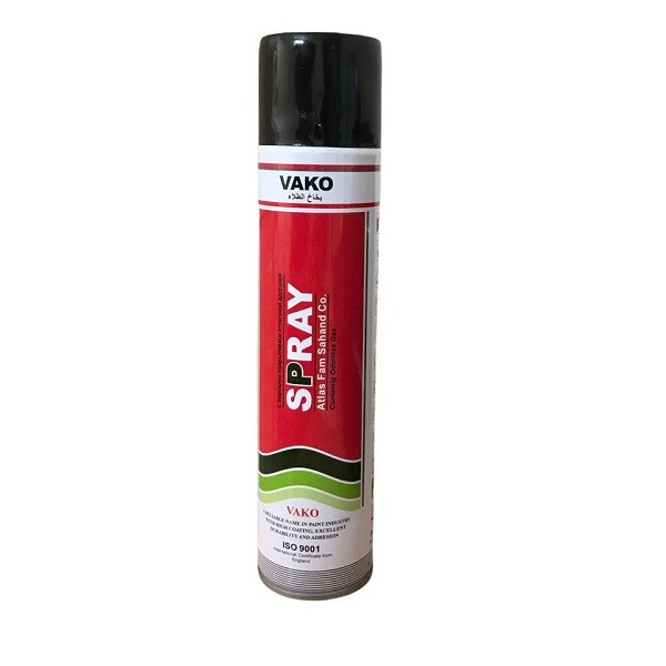 اسپری رنگ مشکی براق (VAKO) «واکو» بر پایهی رزین آکرولیک (روغنی) تولید میشود. از ویژگیهای این نوع اسپری رنگ میتوان به خشک شدن کمتر از 10 دقیقهای آن اشاره کرد. برای اینکه کمترین مقدار شره کردن رنگ رخ دهد و همچنین برای پوشش مطلوبتر سطح موردنظر، بهتر است از فاصلهی 25 سانتیمتری، رنگ را اسپری کنیم. از این اسپری میتوان برای سطوح مختلف از جمله فلز، چوب، شیشه و پلاستیک استفاده کرد. گفتنی است با توجه به کیفیت و مات بودن این اسپری رنگ، میتوان از آن برای مصارف خانگی، هنری و صنعتی بهره برد. رنگ موجود در این اسپری بدون سرب است و مقاومت خوبی دربرابر ضربه و خراشیدگی دارد. ساختار رنگ واکو به گونهای است که از فلزات دربرابر زنگ زدگی محافظت میکند. همچنین روی سطوحی که مستقیما در معرض اشعهی UV (فرابنفش) هستند نیز میتوان از این اسپری رنگ استفاده کرد. استفادهی آسان و همچنین پوششدهی مطلوب این محصول باعث میشود جایگزین بسیار مناسبی برای رنگآمیزی با قلممو باشد.