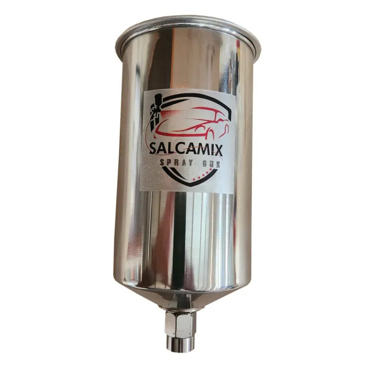 جنس کاسه فلزی ( جنس فلزی آن سبب می شود در برابر ضربه مقاوم باشد و عمر بالاتری نسبت به کاسه های پلاستیکی دارد ) و رزوه از داخل می باشد و مخصوص پیستوله های ساتا ( سایتا ) مخصوصا مدل های h827 و طرح ساتا است ( به همه انواع پیستوله های مشابه می خورد ) . درب آن به خوبی در جای خود قرار می گیرد و کیپ می شود . در زیر پیستوله همانطور که در عکس پیداست یک واشر قرار میگیرد که باعث آب بندی مخزن به روی پیستوله می شود ظرفیت این مخزن پیستوله 600 سی سی است